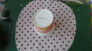 depois mediremos a altura para cortar uma tira de tecido, a qual iremos utilizar para encapar toda a volta do copo